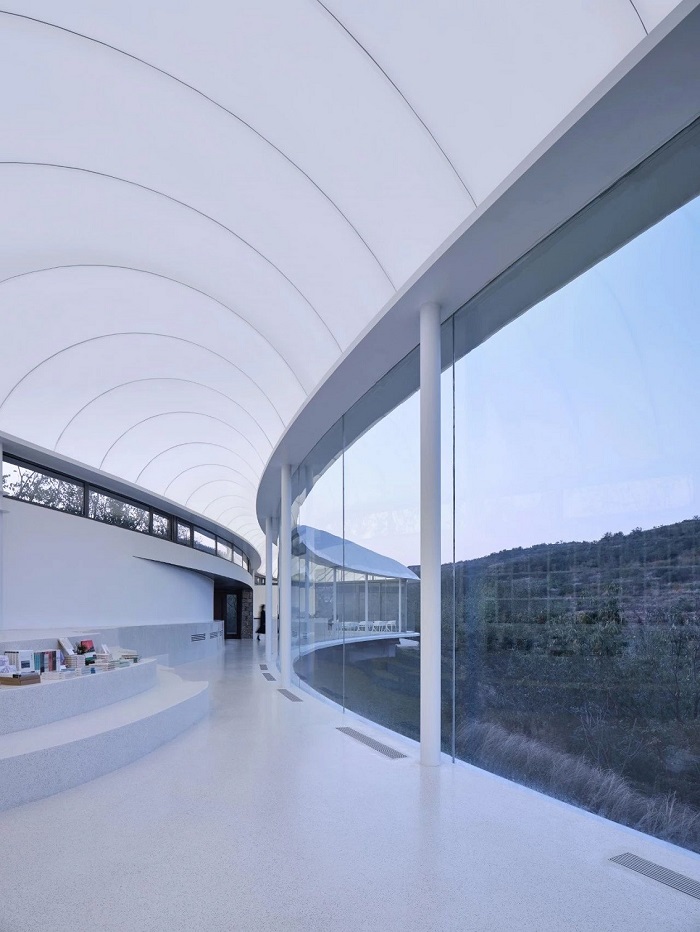 工程概況:泰安書吧膜結(jié)構(gòu)工程是一個(gè)集觀景、閱讀、休閑娛樂(lè)于一體的綜合項(xiàng)目,既有膜結(jié)構(gòu)建筑本身的現(xiàn)代化氣息,又有設(shè)計(jì)者及建造者高超技藝賦予的精致典雅,給人一種時(shí)尚別致卻又內(nèi)斂質(zhì)樸的觀感。本工程建筑屋面為流線形,建筑面積約600平米。外膜采用德國(guó)進(jìn)口白色環(huán)保膜材,內(nèi)膜采用PTFE內(nèi)膜,中間加保溫隔熱層,內(nèi)膜需要安裝燈光。屋面以下為全封閉空間,墻體采用落地玻璃形式,從各個(gè)角度都能獲得極佳的視野效果。