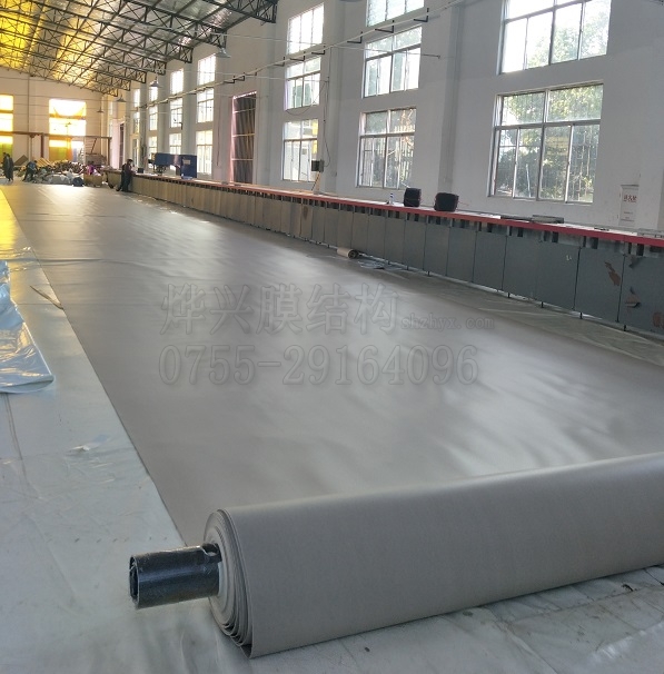 2、同一膜結(jié)構(gòu)工程宜使用同一企業(yè)、同一批號(hào)的膜材。每批膜材均應(yīng)具有產(chǎn)品質(zhì)量保證書和檢查報(bào)告,并應(yīng)進(jìn)行進(jìn)貨抽檢。膜材表面應(yīng)無針孔,無明顯褶皺和明顯污漬,不應(yīng)出現(xiàn)斷絲、裂縫和破損現(xiàn)象,色澤應(yīng)無明顯差異。