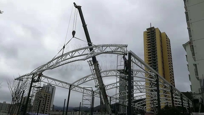燁興-桐梓一中籃球場(chǎng)風(fēng)雨棚膜結(jié)構(gòu)項(xiàng)目已經(jīng)動(dòng)工一個(gè)多月,現(xiàn)在工程進(jìn)展到哪一步了?關(guān)注燁興膜結(jié)構(gòu),帶您領(lǐng)略膜結(jié)構(gòu)施工的最高水準(zhǔn)。今天小編會(huì)將現(xiàn)場(chǎng)的最新施工進(jìn)展給大家介紹一下,讓您對(duì)項(xiàng)目進(jìn)展有個(gè)清晰的了解。
