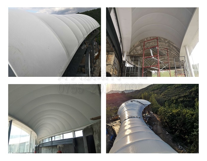 工程介紹:泰安書吧膜結構工程是一個集觀景、閱讀、休閑娛樂于一體的綜合項目,既有膜結構建筑本身的現(xiàn)代化氣息,又有設計者及建造者高超技藝賦予的精致典雅,給人一種時尚別致卻又內斂質樸的觀感。本工程建筑屋面為流線形,建筑面積約600平米。外膜采用德國進口白色環(huán)保膜材,內膜采用PTFE內膜,中間加保溫隔熱層,內膜需要安裝燈光。屋面以下為全封閉空間,墻體采用落地玻璃形式,從各個角度都能獲得極佳的視野效果