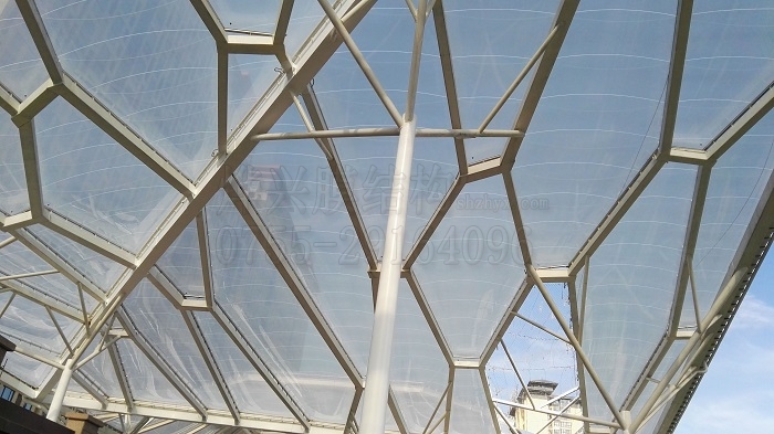 上圖是ETFE氣枕氣壓不足導(dǎo)致的積水現(xiàn)象,不及時處理會造成更嚴(yán)重?fù)p害